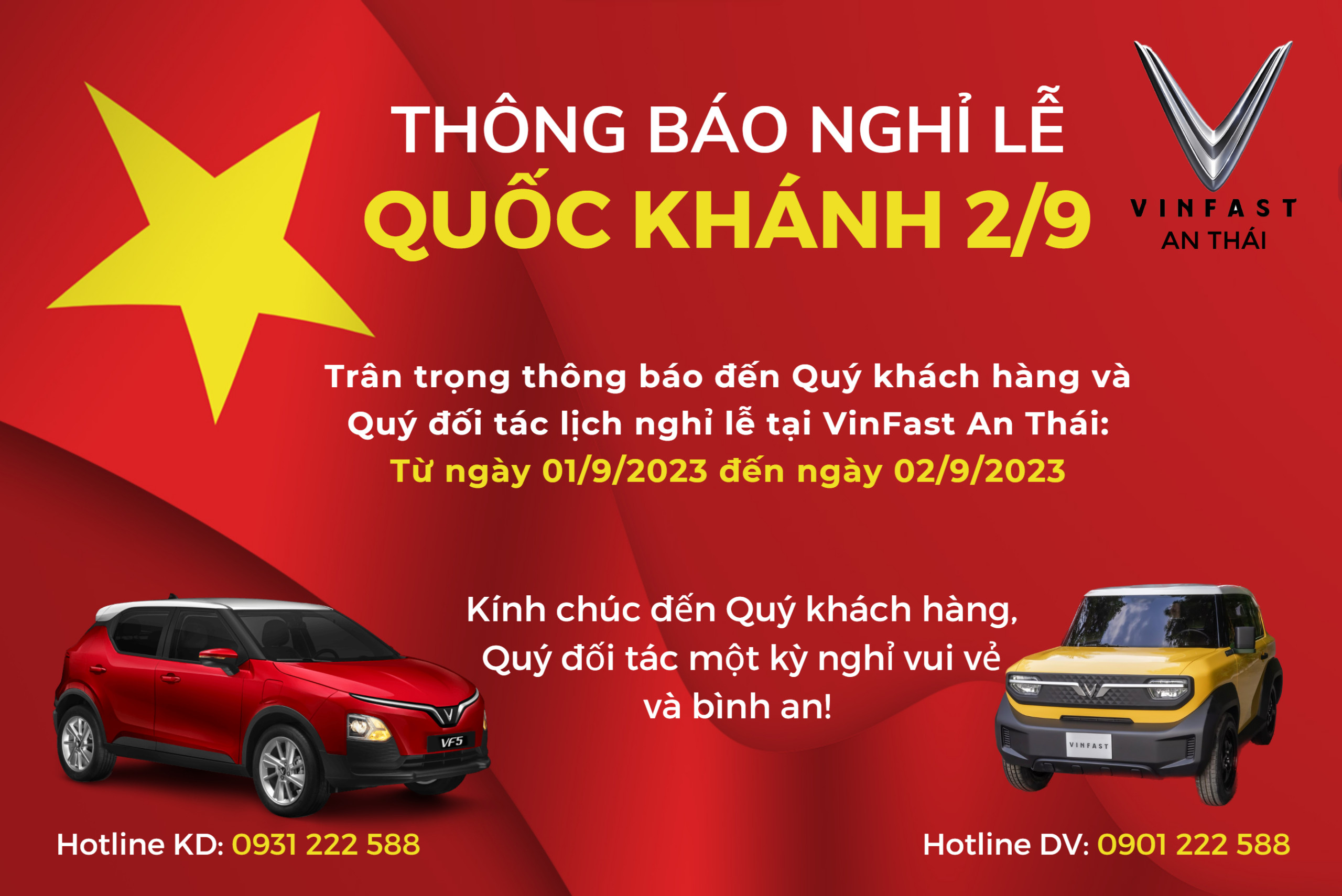 (*) Chưa bao gồm phí lăn bánh. Quý khách vui lòng liên hệ VinFast An Thái để được báo giá lăn bánh mới nhất.